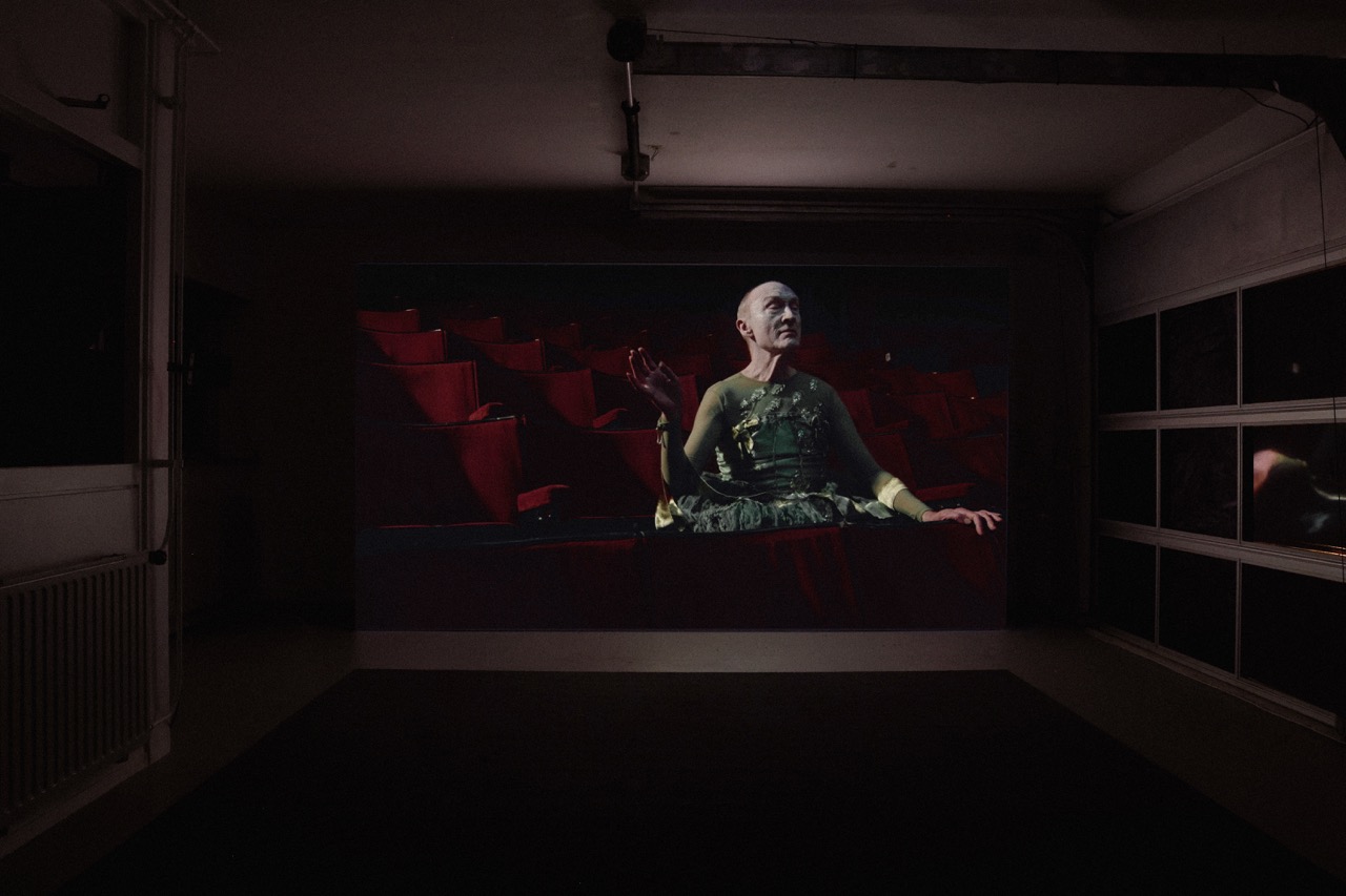 Following these draped collages into the next gallery, they now become reference to theatre curtains or backstage partitions, as we hear the voice of an actor drawing us closer. Seated in what appears to be an abandoned theatre or cinema and dressed in an extravagant plant-like costume they recount stories of their acting career across stage and screen. Their specialty is playing the weed and their desirability as an actor is based on the fickle tastes of directors and audiences. They are an Outsider, an Other, and find their home amongst the resilient peers thriving on the margins. Remaining slippery, the film slides from this monologue into a series of increasingly hallucinatory vignettes, Gothic tales of sentient plants, vengeful ghosts and a theatre set ablaze. Our actor inhabits the role of narrator, recounting these stories to an empty theatre before giving way to the ghosts of the architecture in what becomes something close to a haunting, Lynchian dream.